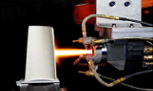 另一种方法是通过高压喷射燃料和氧气,使其在喷嘴外部燃烧,然后注入热喷涂粉末,并用高压气体将其从喷嘴轴向喷入火焰中,最后通过喷嘴外部空气罩中的压缩气体压缩燃烧火焰,加速熔化热喷涂粉末并将其喷向基材。